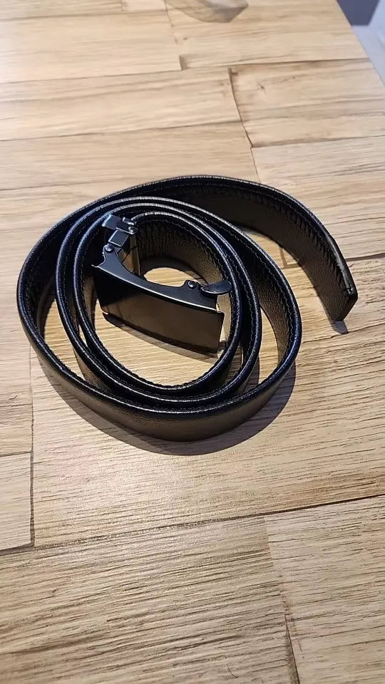 Transform your look with this sleek, leather auto-buckle belt, designed to provide ultimate comfort and style for business or casual wear